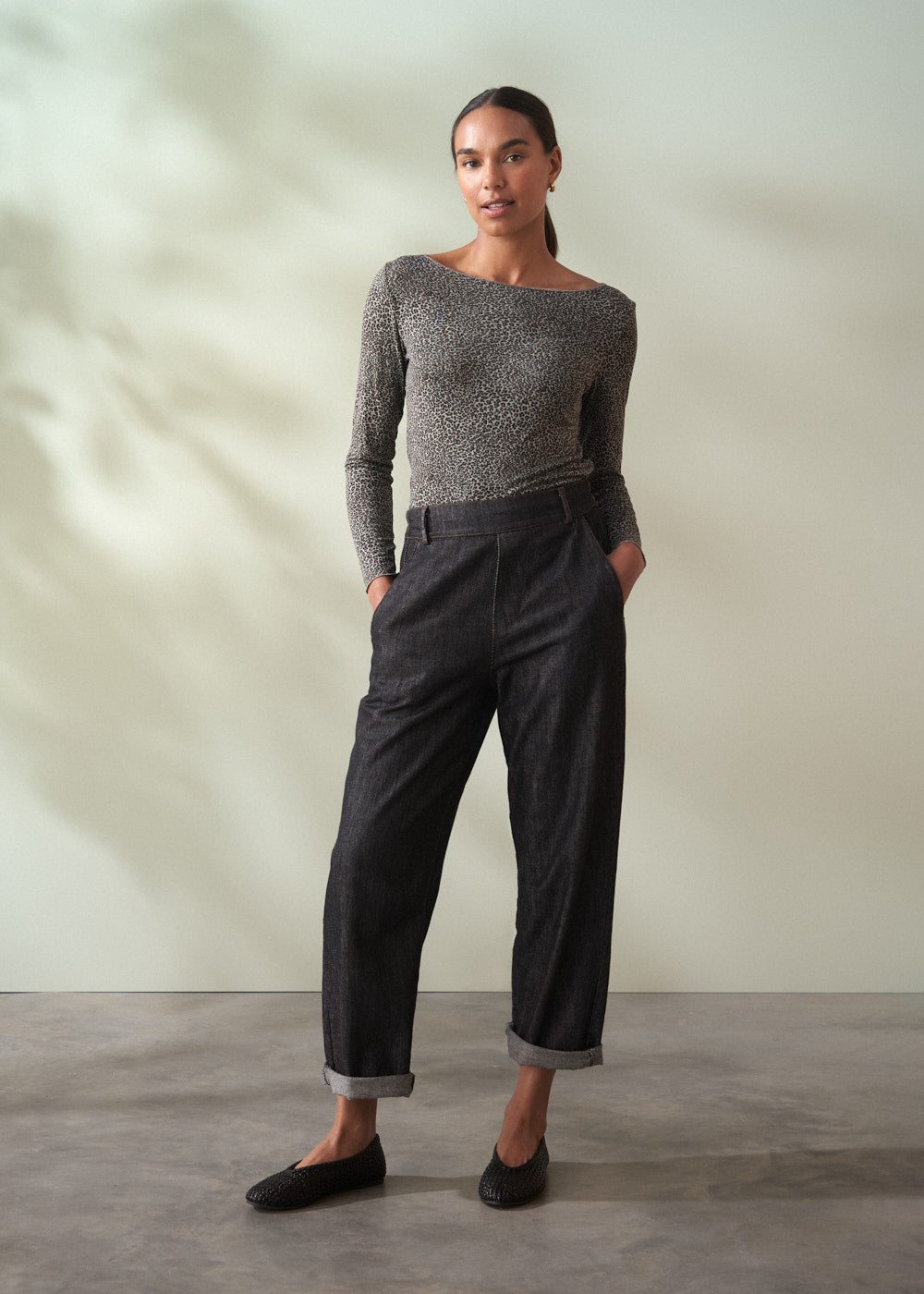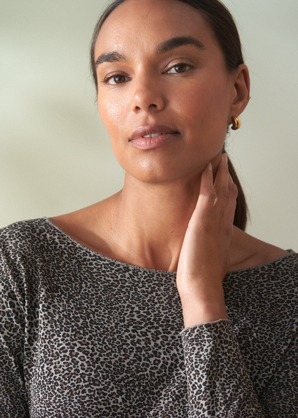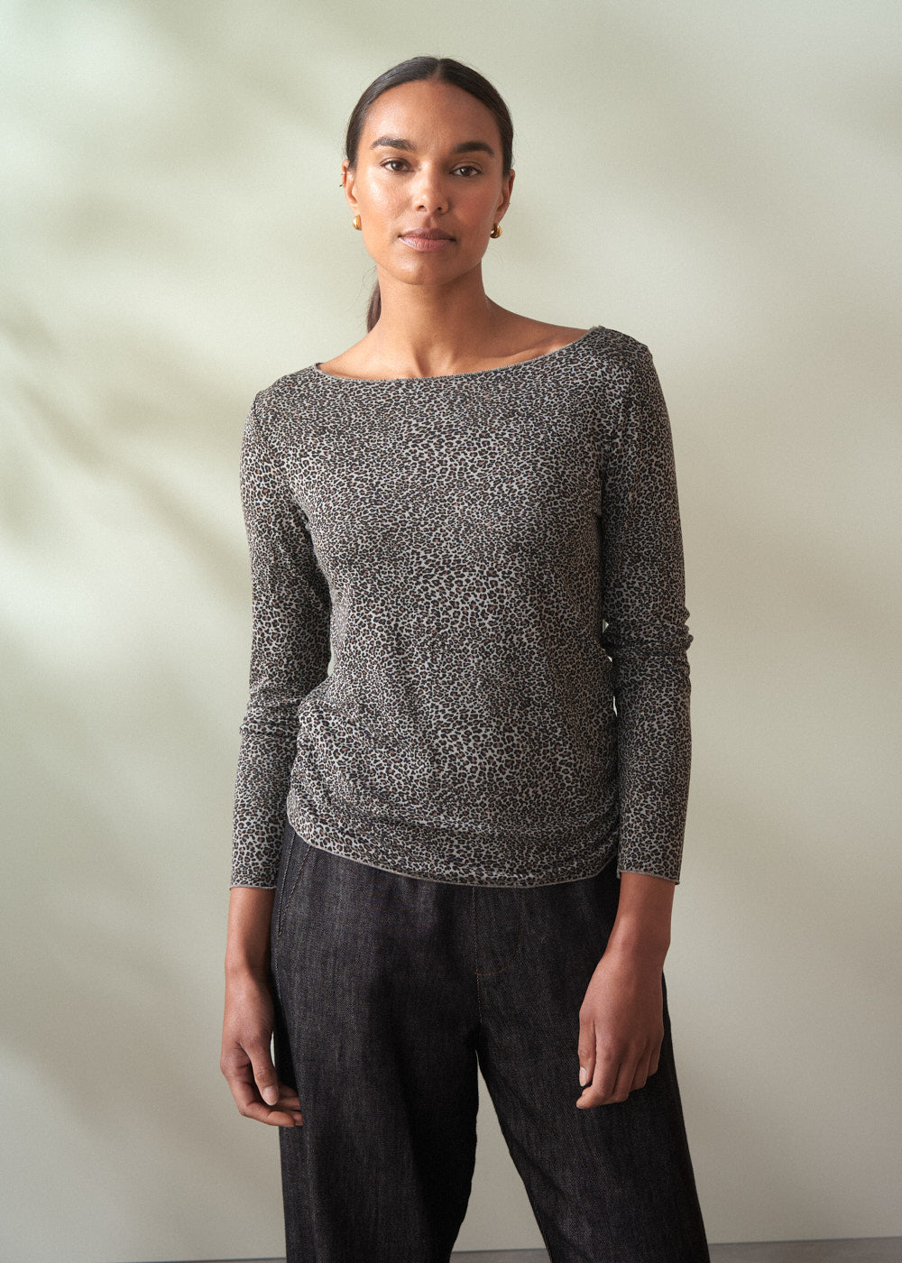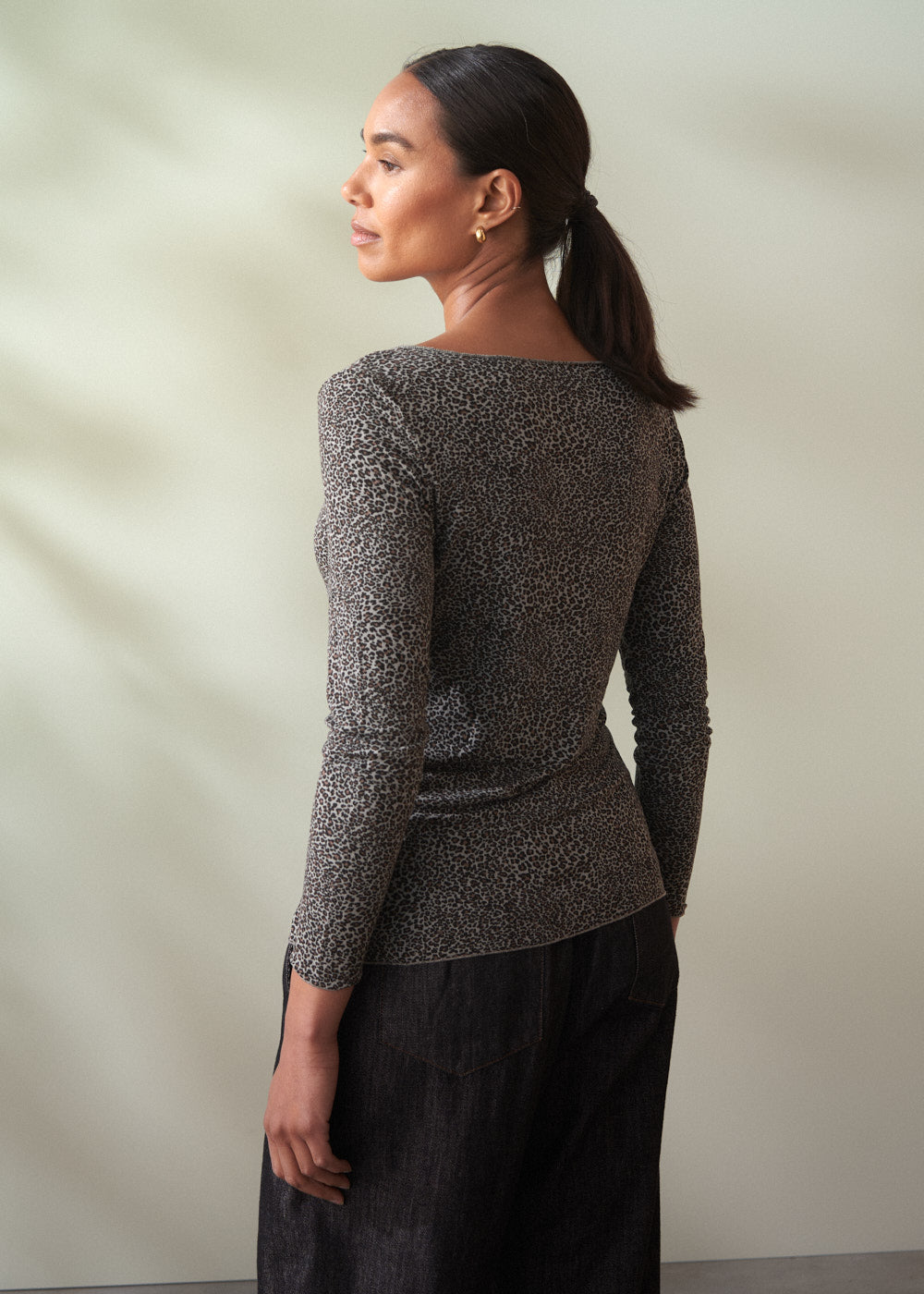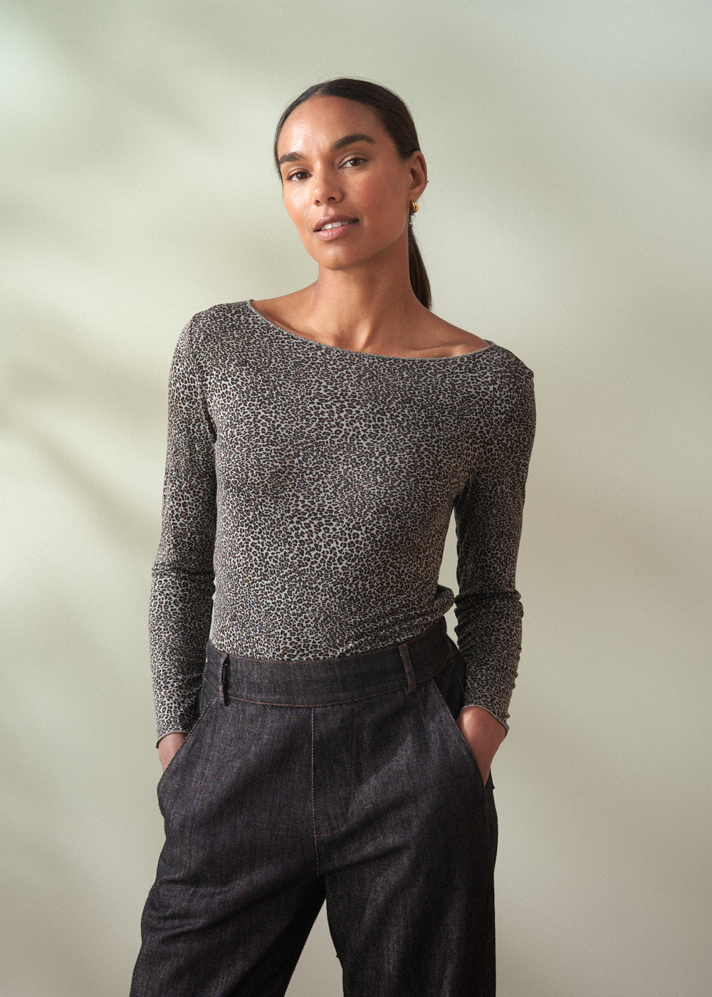 An essential layering piece in an ultra-soft stretch fabric, the Top is designed to work hard year-round. The leopard print delivers just the right dose of pattern under tailoring, layered with knits, or worn solo for effortless impact.