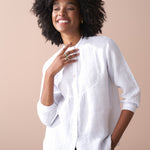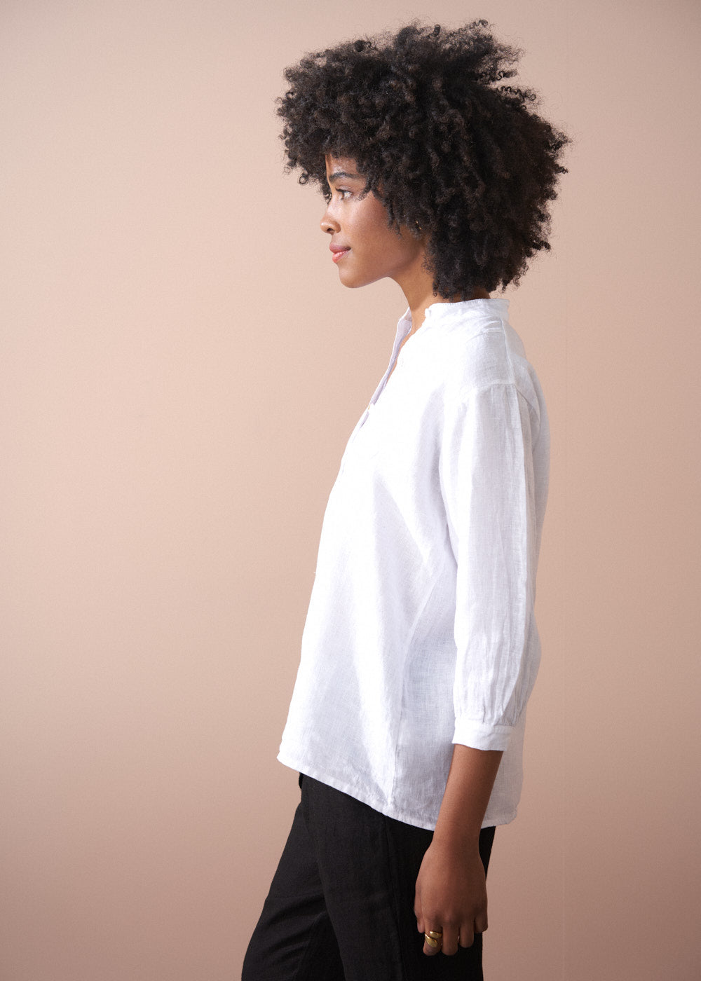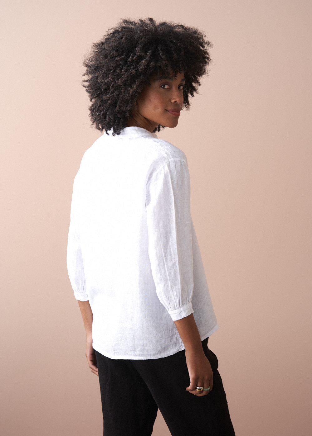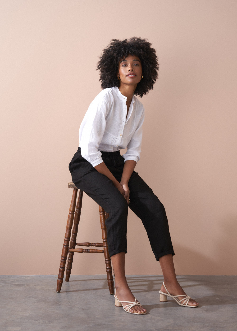 A returning favourite, the Bib shirt combines a chic blouse with the versatility of a classic button-down to create a breathable, easy-to-wear wardrobe essential. Style it unbuttoned as a lightweight jacket for layering on cool evenings.