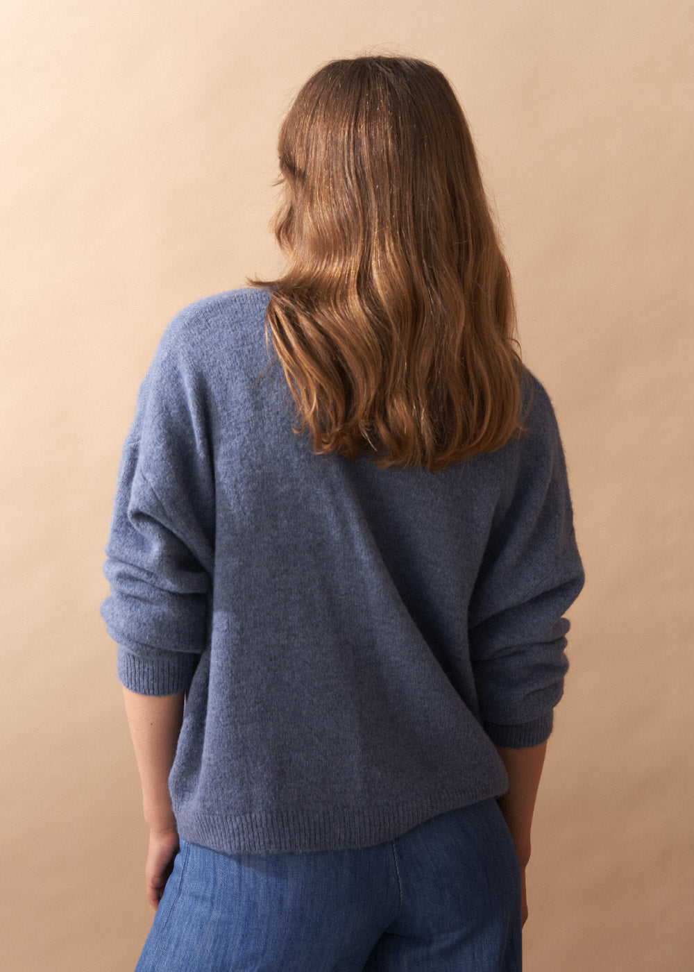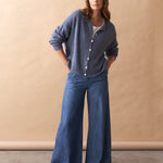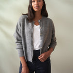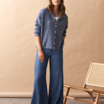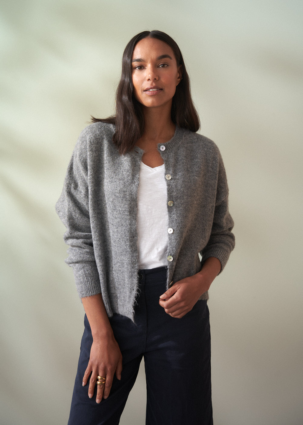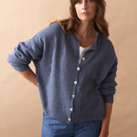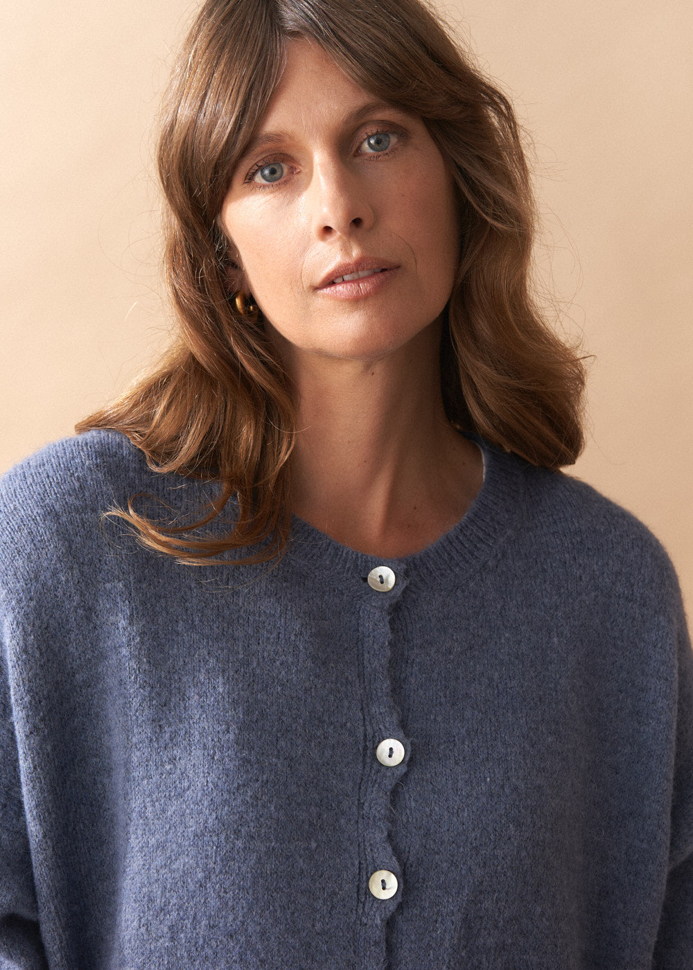 Crafted from a sumptuous wool blend, in an elegant blue-grey hue and featuring iridescent mother-of-pearl button, the cardigan is a luxurious addition to your knitwear collection.