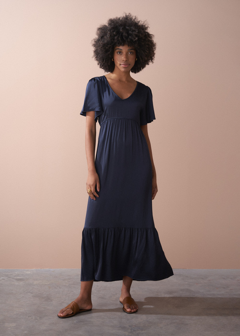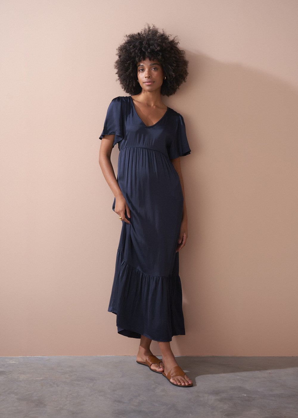 The Satin maxi dress balances light and floaty with subtle structure to create a comfortable, temperature-friendly and effortless look. Whether worn with a chunky cardigan and flats or dressed up with heels for a special occasion, it's timeless style you'll wear year after year.