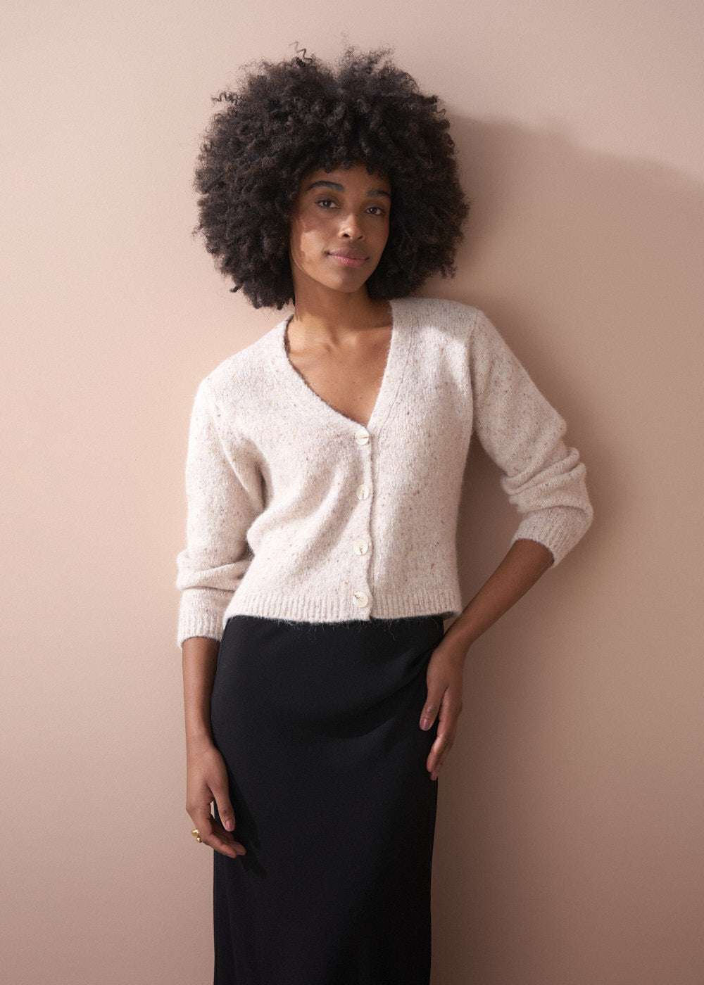 In a subtle, marled oatmeal hue and spun from a sumptuous alpaca wool blend, the Knitted Cardigan is a luxurious, lightweight knit that's designed to slip seamlessly into your transitional wardrobe.