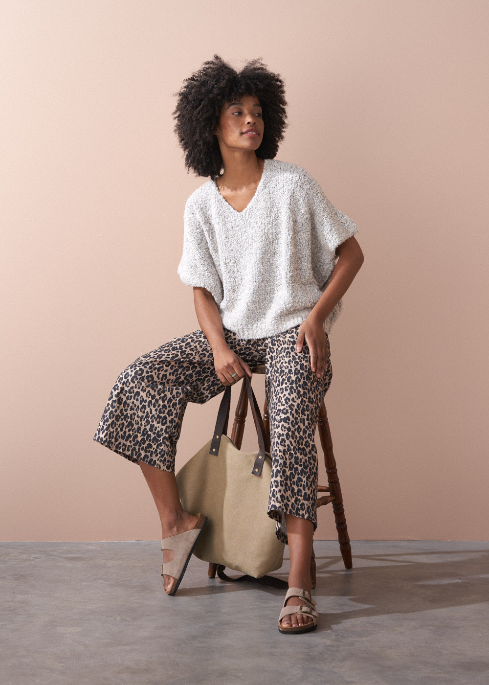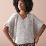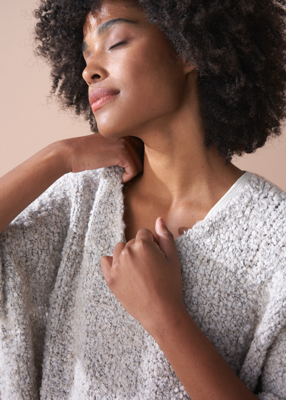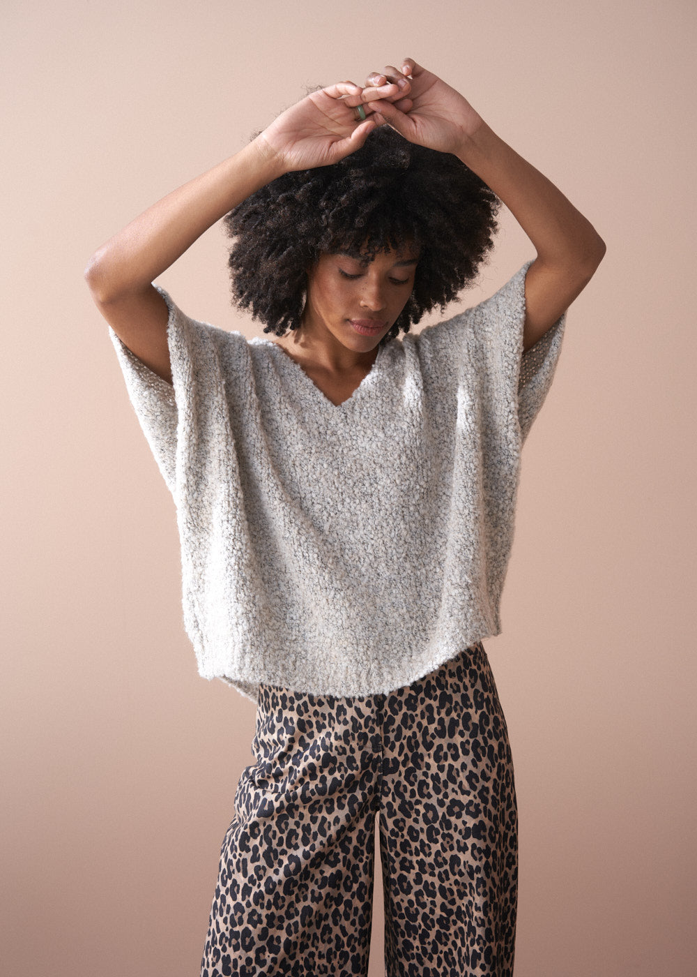 Crafted from a luxurious alpaca wool blend, the sweater showcases a rich bouclé texture and an oversized, boxy silhouette, making it the perfect statement layering piece.