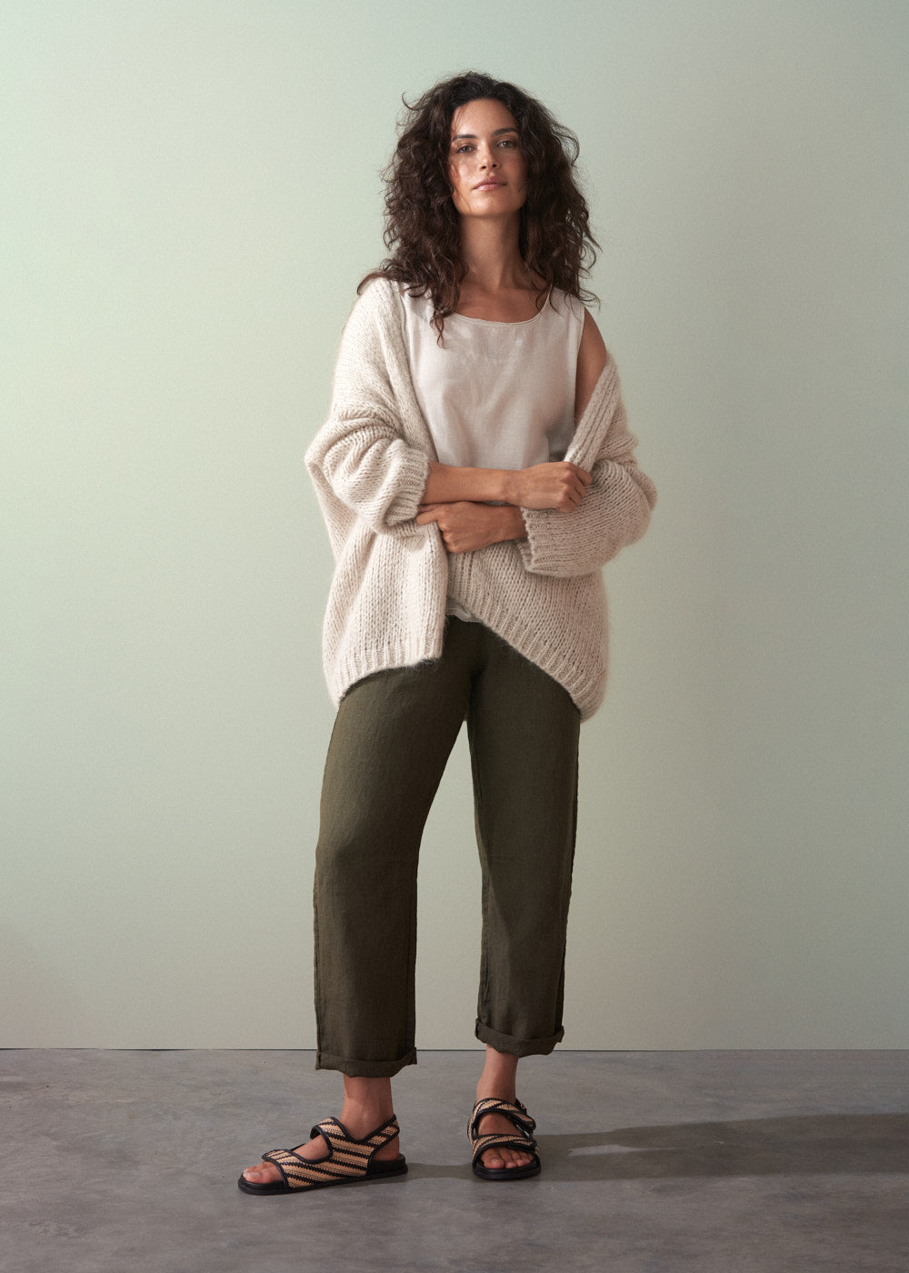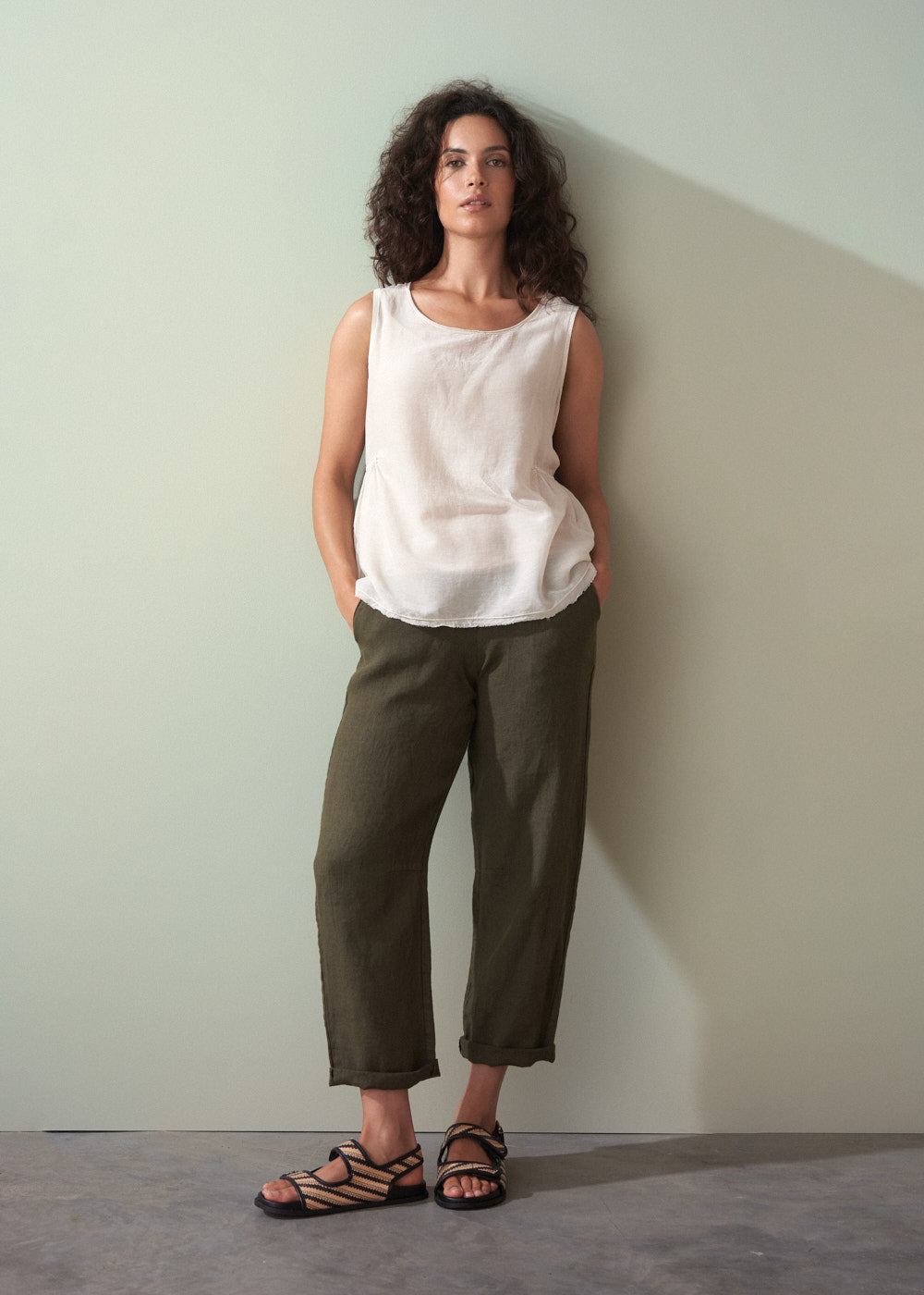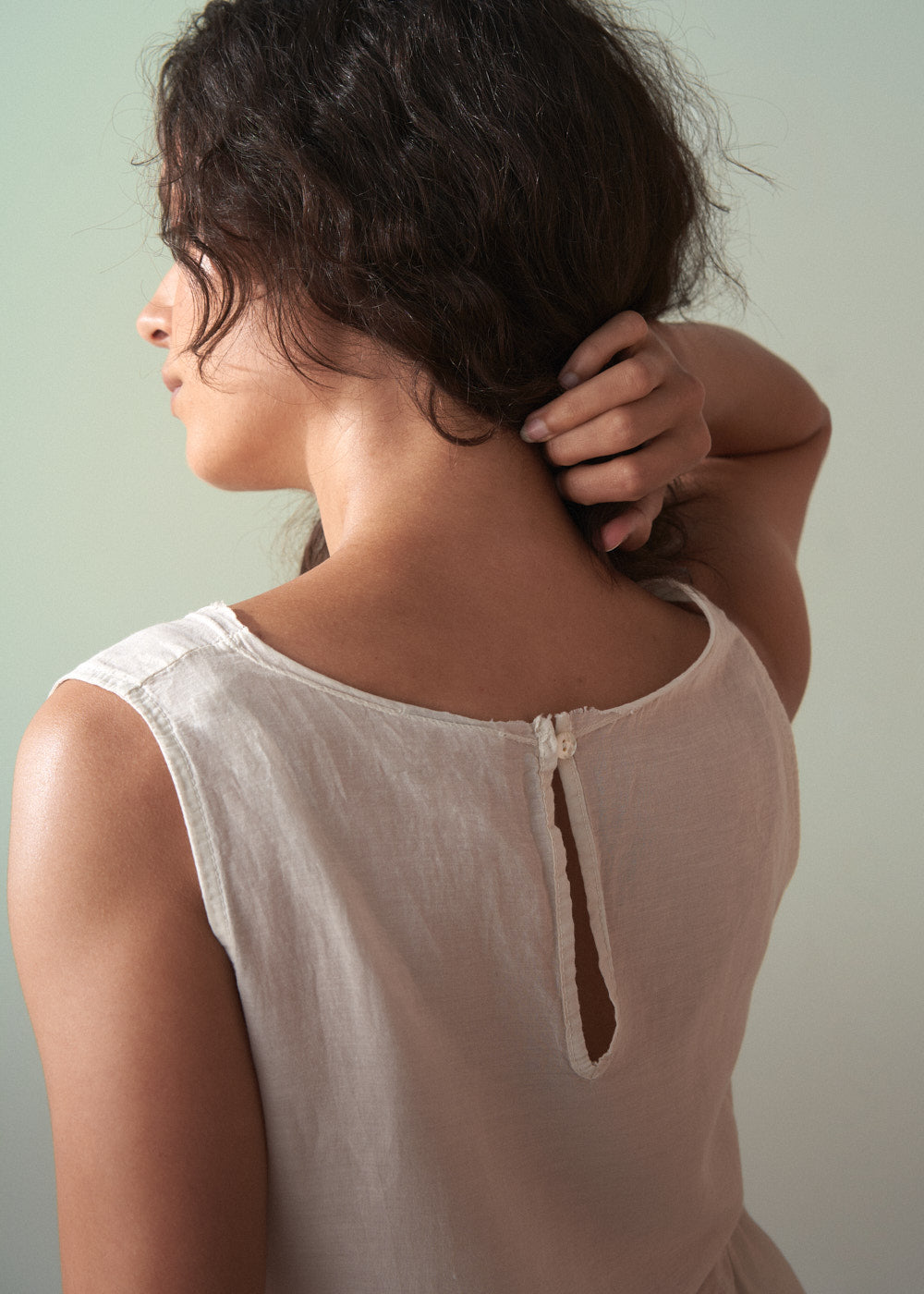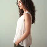 The Silk Mix Top has a beautifully sheer finish and a unique gathering feature on the waist, creating a subtle peplum silhouette. Crafted from a luxurious silk and cotton blend in a delicate off-white hue, it’s light, airy and perfect for warm days.