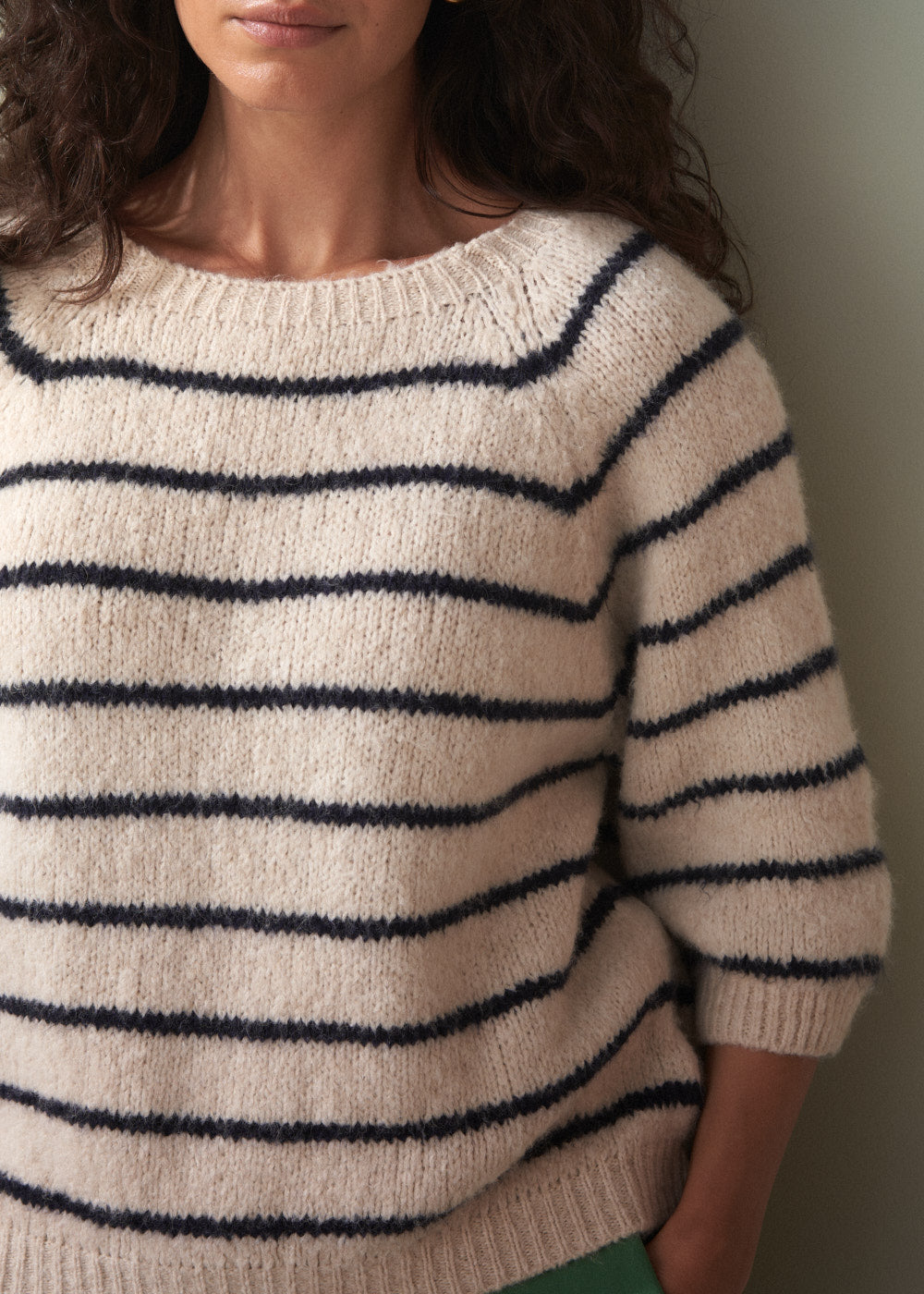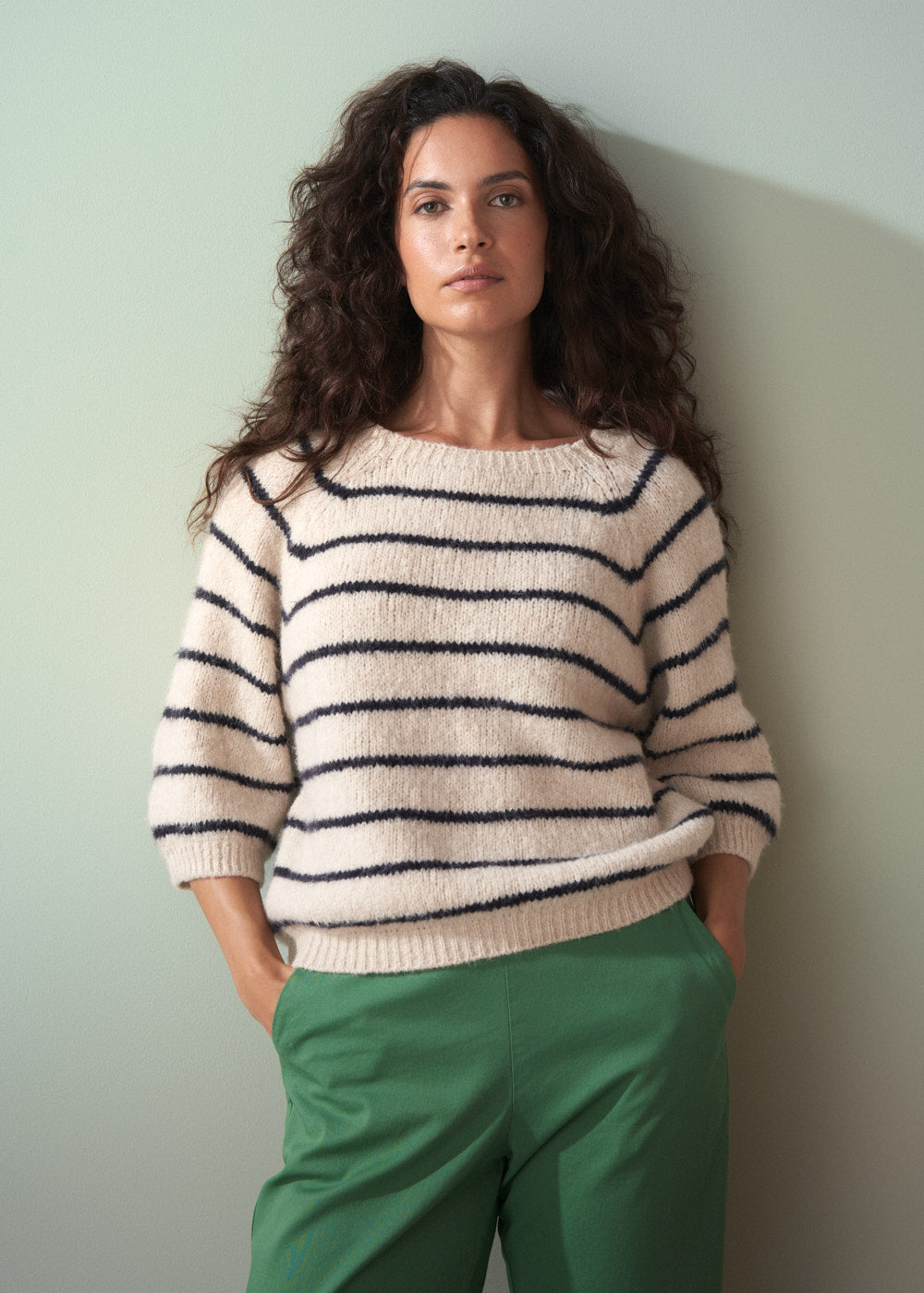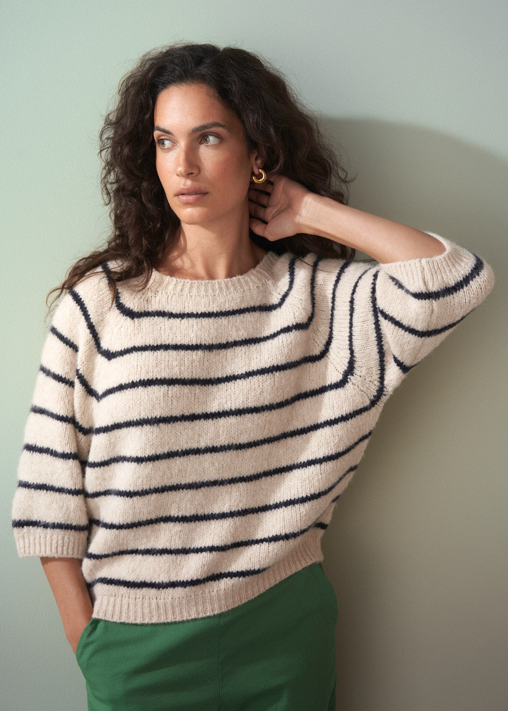 Featuring a chunky knit, relaxed fit and a classic navy stripe, the Striped Sweater strikes the perfect balance of cosiness, texture and subtle pattern.