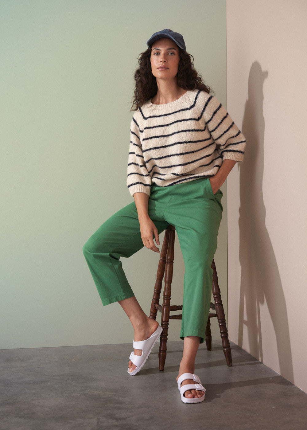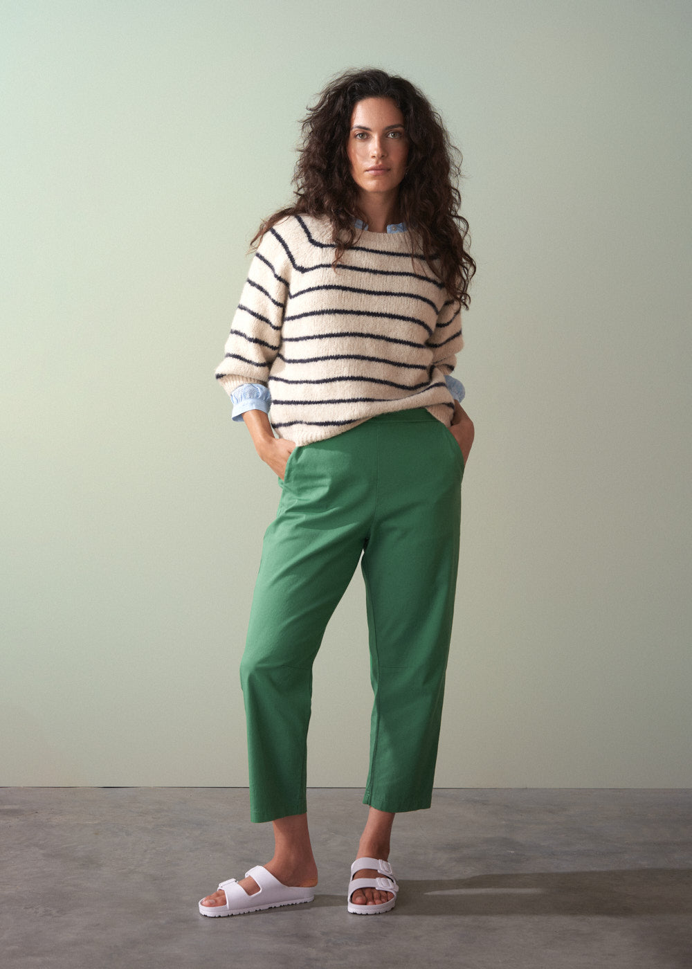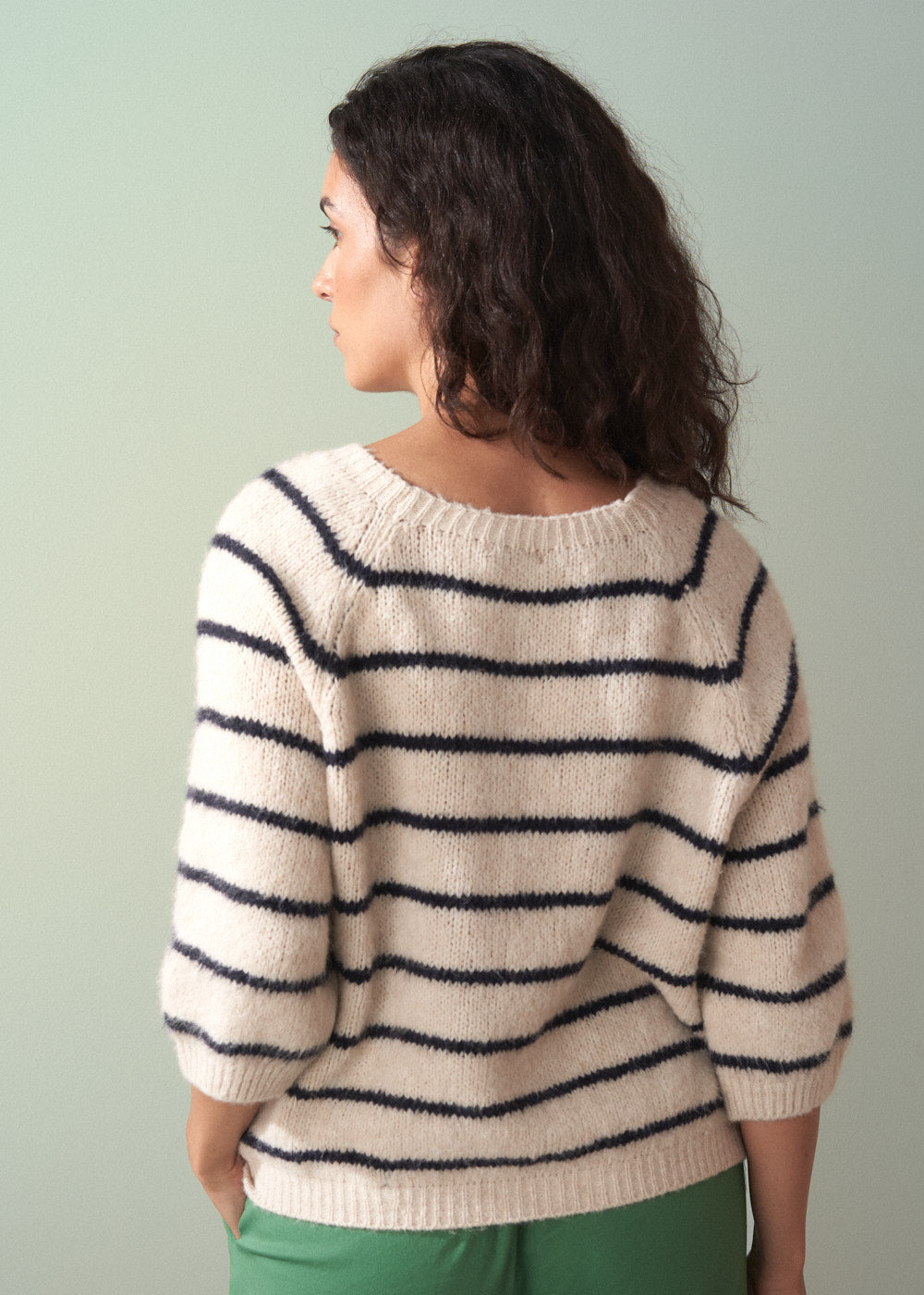 Featuring a chunky knit, relaxed fit and a classic navy stripe, the Striped Sweater strikes the perfect balance of cosiness, texture and subtle pattern.