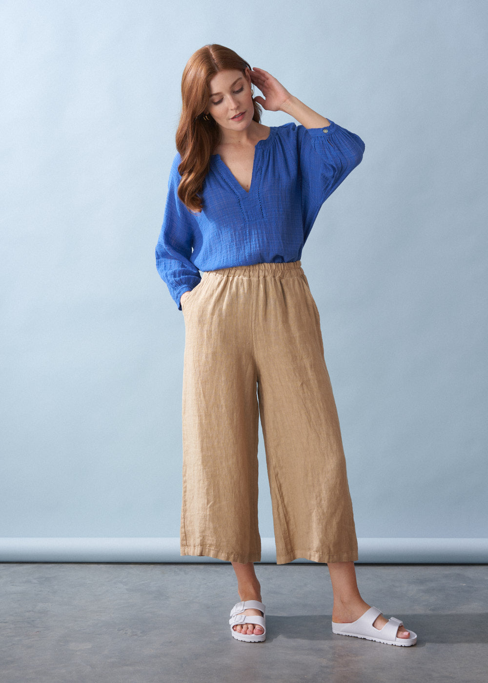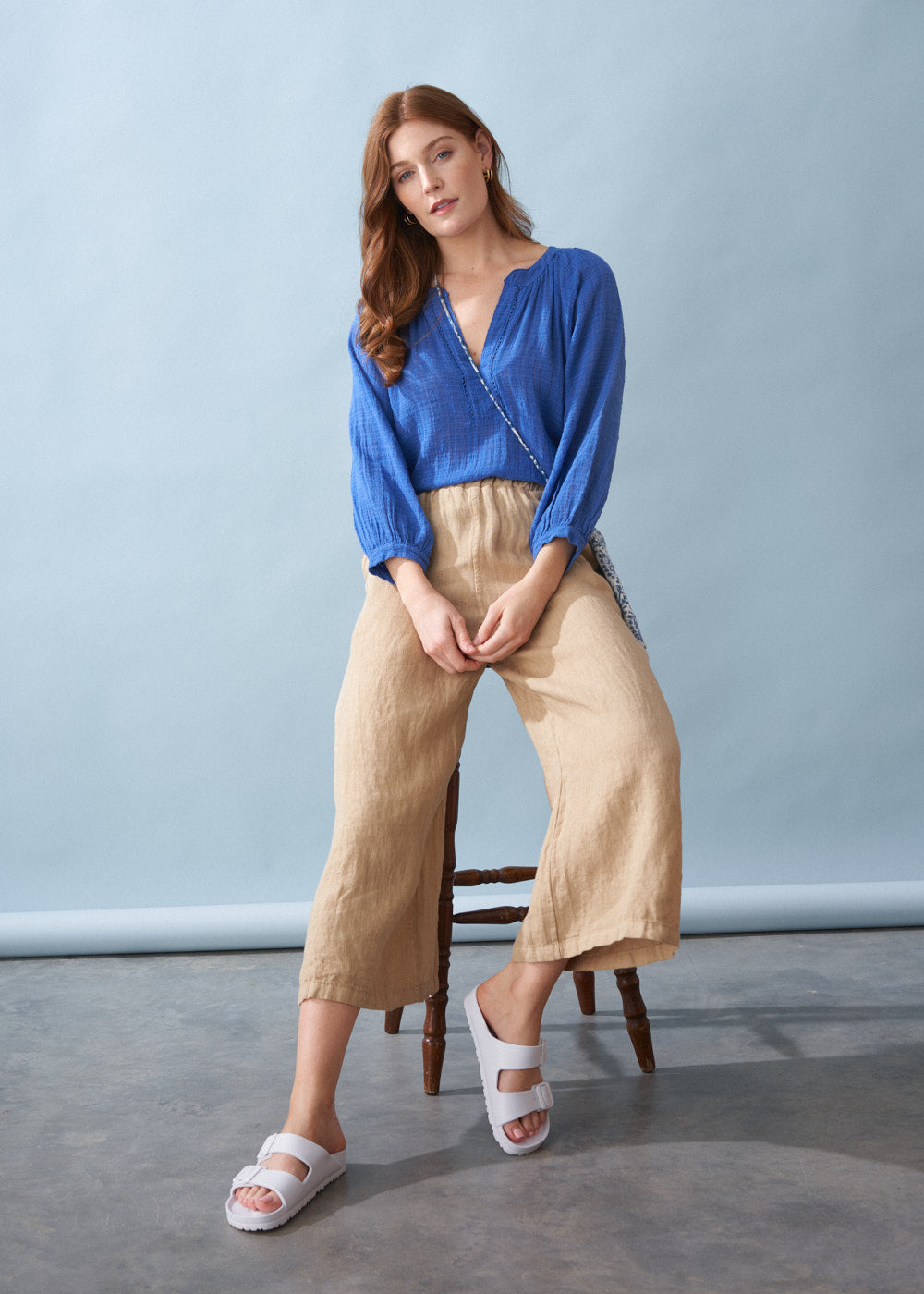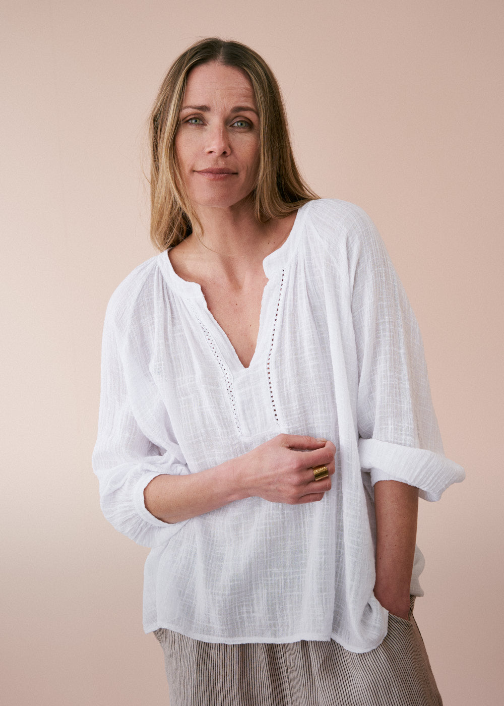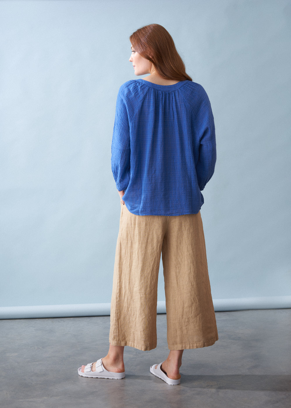 Made from soft, lightweight cotton, the Casual Cotton Top is a breathable and airy blouse with a relaxed, laid-back feel. It features a simple A-line silhouette and 3/4 length raglan sleeves.